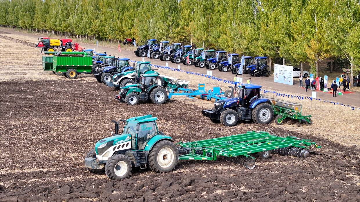 雷沃70-340马力智能拖拉机、10-18公斤喂入量大型收成机械、农机具、青贮机、割草压扁机等高端农机配备会集露脸,以黑土地才智农业全体解决方案智绘出一幅秋日画卷。